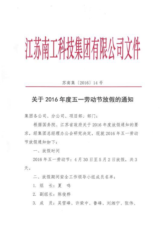 关于2016年度五一劳动节放假的通知