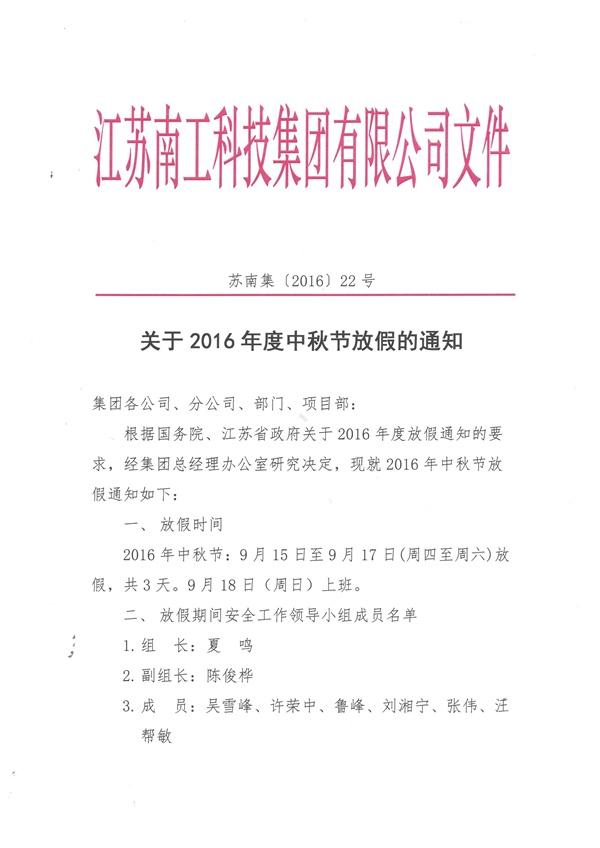 您的位置:集团首页 >> 新闻中心 >> 集团公告 >> 关于2016年度中秋节放假的通知