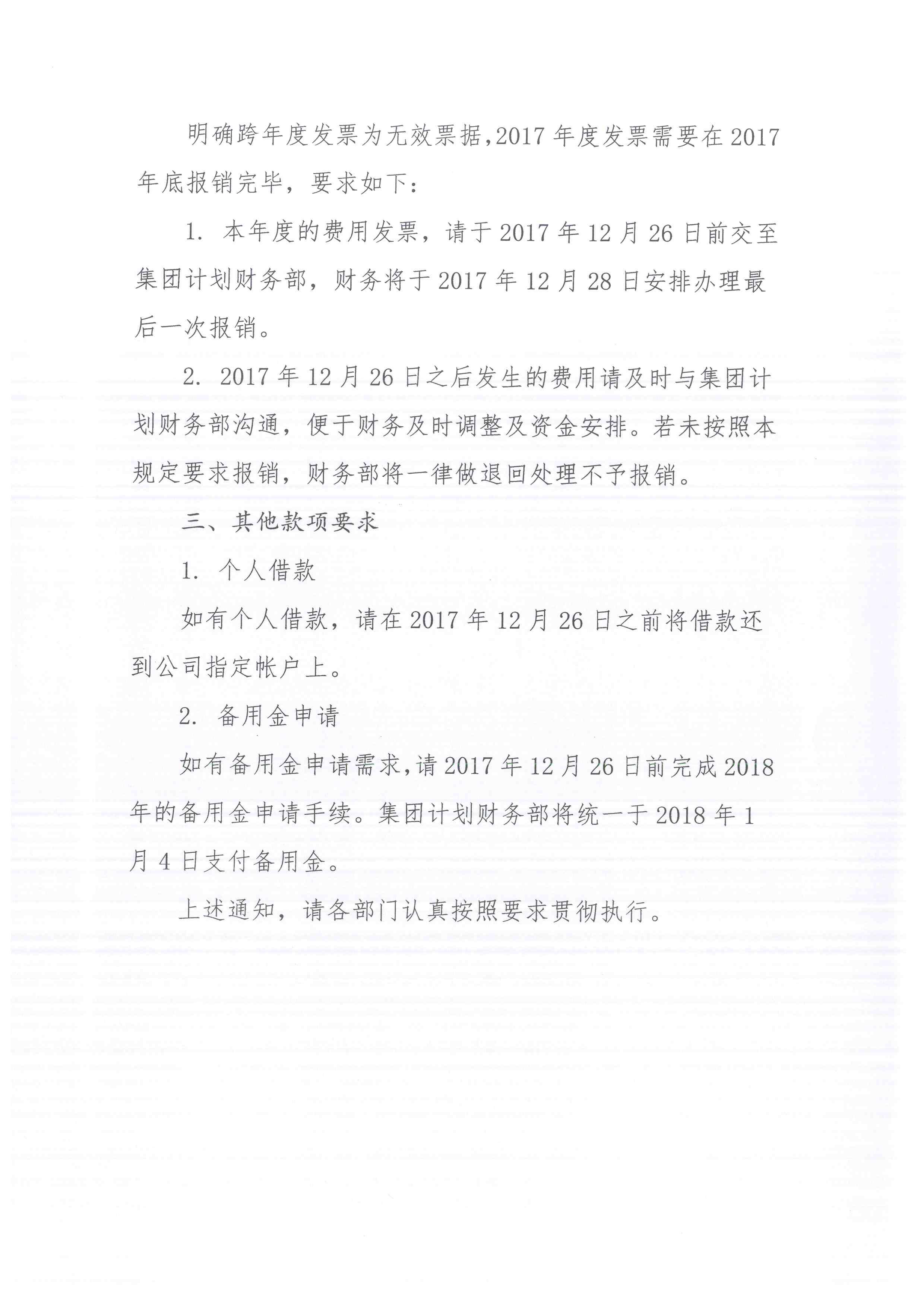 关于2017年底发票报销及封帐要求等事项的通知