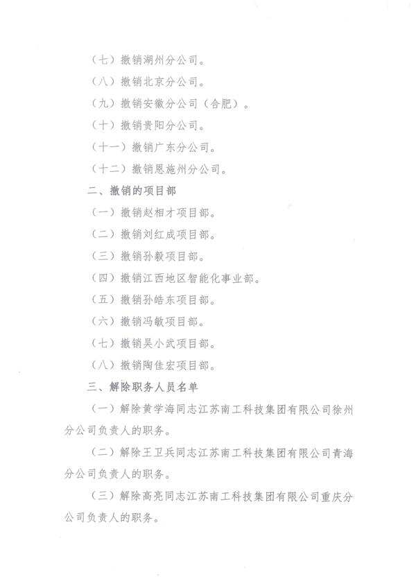 关于撤销部分分公司、项目部及相关负责人职务的公告