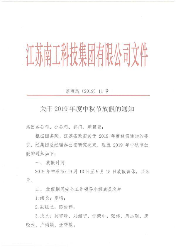 您的位置:集团首页 >> 新闻中心 >> 集团公告 >> 关于2019年度中秋节放假的通知