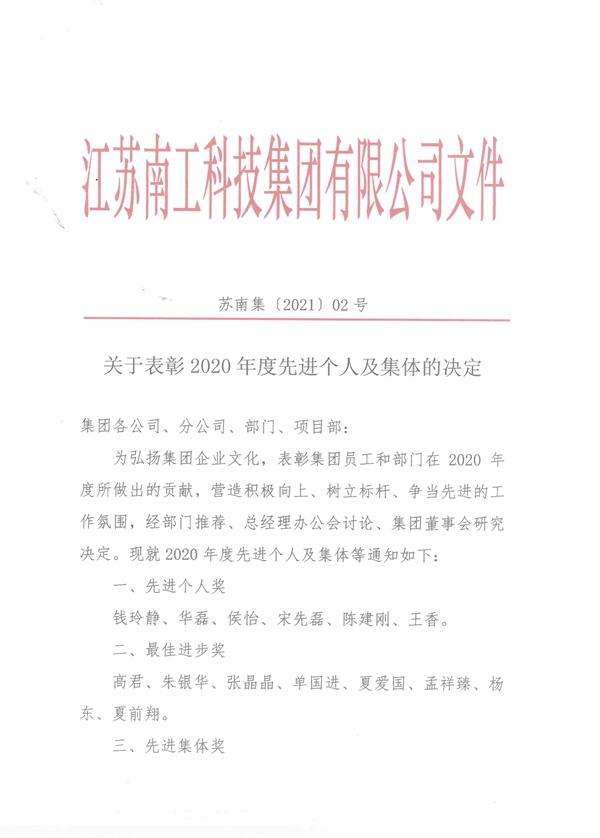 关于表彰2020年度先进个人及集体的决定