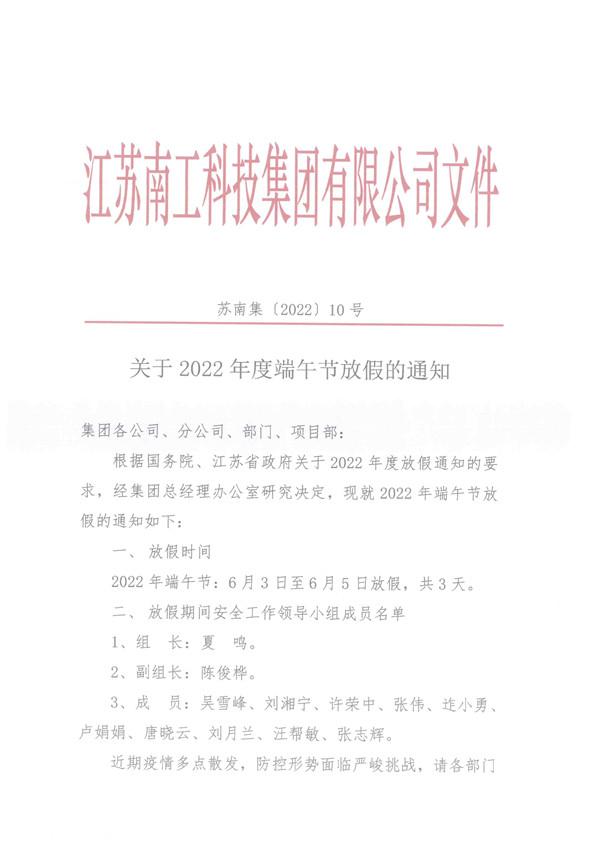您的位置:集团首页 >> 新闻中心 >> 集团公告 >> 关于2022年度端午节放假的通知