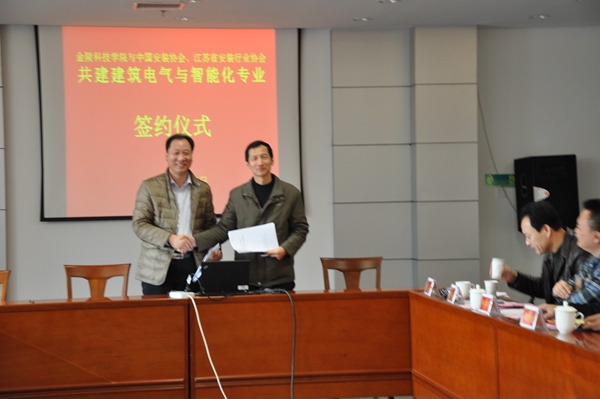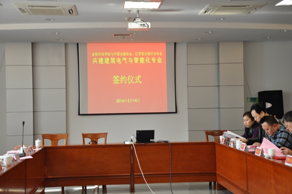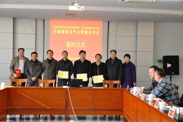 2014年3月14日,金陵科技学院与中国安装协会智能化与消防工程分会、江苏省安装行业协会智能消防电子专业委员会签订了共建“建筑电气与智能化专业”的协议。出席协议签订仪式的有金陵科技学院副校长冯年华、金陵科技学院教务处副处长吴钟鸣、金陵科技学院机电工程学院院长鞠全勇、党总支书记赵士安、副院长周扩建、郑李明、副书记陈建、楼宇系主任牟福元等领导和老师。江苏省安装行业协会会长邹金林;中国安装协会智能化与消防工程分会会长、江苏省行业协会智能消防电子分会会长、江苏3499拉斯维加斯官网科技集团有限公司总经理陈晓;分会秘书长助理余晶等出席了会议。