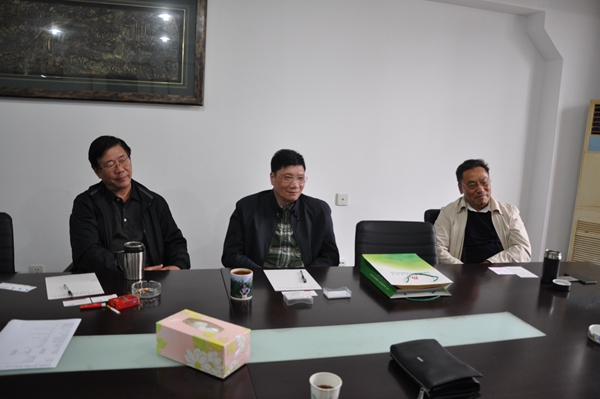上海市智能建筑建设协常务副会长兼秘书长周建新(中)、副秘书长顾永和(左)、副秘书长沈忠明(右)