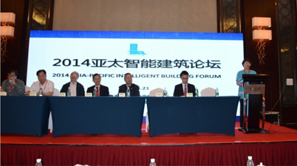 2014年5月20-21日,2014亚太智能建筑论坛在上海大宁福朋大酒店胜利召开。参加论坛的有上海市智能建筑建设协会名誉会长黄健之;上海市智能建筑建设协会常务副会长兼秘书长周建新;亚洲智能建筑学会会长梁以德;台湾智慧建筑协会理事长温琇玲;中国绿色建筑与节能(澳门)协会会长桌重贤;中国安装协会智能化与消防工程分会会长、江苏省安装行业协会智能消防电子专业委员会会长、江苏3499拉斯维加斯官网科技集团有限公司总经理陈晓;中国建筑业协会智能建筑分会副秘书长苗占胜;中国勘察设计协会工程智能设计分会副秘书长兼专家委主任张宜;北京市建筑业协会智能建筑专业委员会副主任兼秘书长李家阳;重庆市建筑业协会智能建筑分会会长兼秘书长王正中;浙江省土木建筑学会智能建筑分会会长吴军;江苏省安装行业协会智能消防电子专业委员会常务副秘书长席天阳、秘书长助理余晶等。2014亚太智能建筑论坛的嘉宾、系统集成商、产品供应商等共200多人参加了会议。