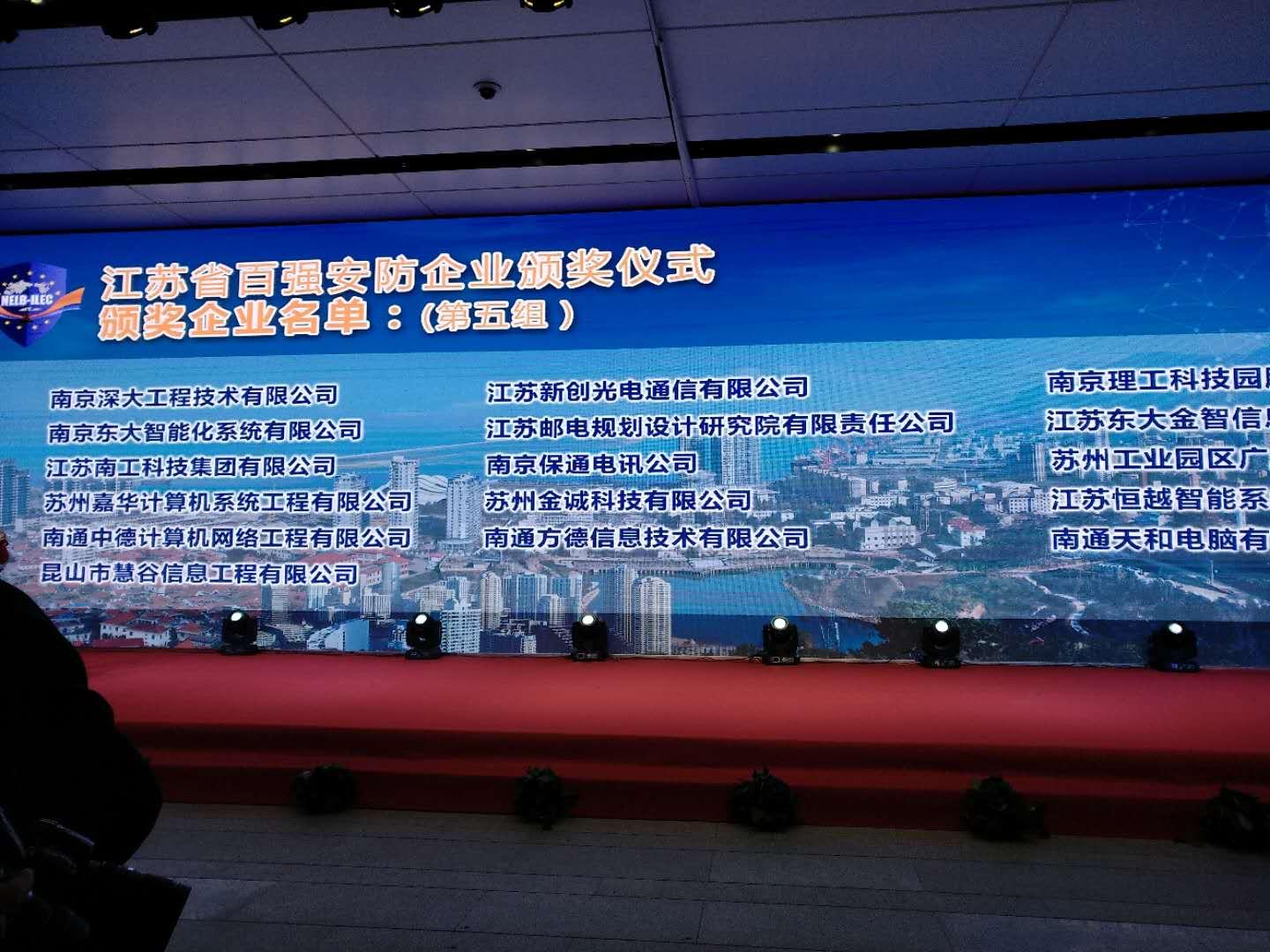 2017年12月12日,江苏省百强安防企业颁奖仪式在“连云港论坛暨警用装备和公共安全产品博览会”现场举行。参加会议的有原公安部科技信息局副局长牛晋,南京安全技术防范行业协会秘书长张亚忠、副秘书长查雪松,南京安全技术防范行业协会副理事长、江苏3499拉斯维加斯官网科技集团执行董事陈俊桦等300多人。陈俊桦执行董事参加了颁奖活动,并代表江苏3499拉斯维加斯官网科技集团有限公司领取了“江苏省百强安防企业”奖状。