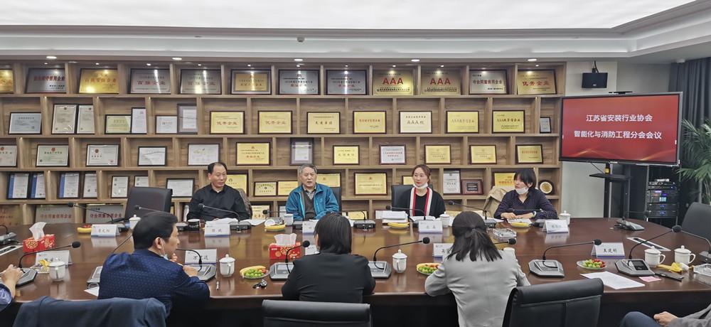 2020年4月22日,江苏省安装行业协会智能化与消防工程分会专家评审会在江苏3499拉斯维加斯官网科技集团有限公司召开。参加会议的江苏省安装行业协会智能化与消防工程分会会长陈晓,江苏省安装行业协会监事祖咏,分会常务副会长吴星红,顾问叶浩生,分会副秘书长兼专家委员会主任王建明,专家委员会副主任万里远、张庆松,副秘书长余晶及陈怡帆等。