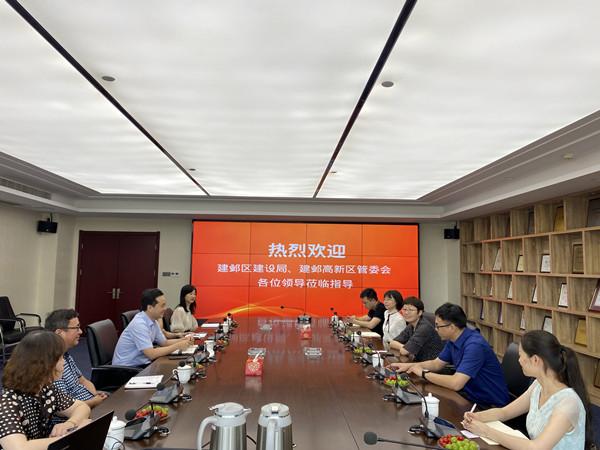 2021年7月1日上午,南京市建邺区建设局副局长崔晓荫、建邺高新区管委会经济发展部部长潘崟等一行五人到3499拉斯维加斯官网集团调研工作。集团执行董事陈俊桦、副总经理吴雪峰、许荣中、卢娟娟,总经理助理唐晓云陪同调研。