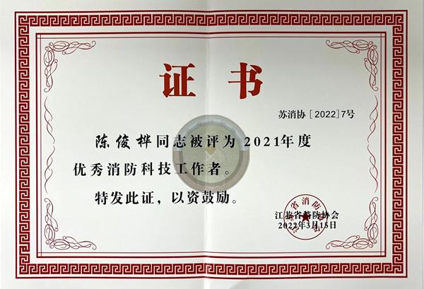会议审议通过了协会年度工作报告、年度财务报告、协会“十四五”发展规划、协会六届理事会管理制度(办法)汇编,表决通过了协会六届理事会理事、常务理事、监事会监事增补议案。会议表彰了2021年度先进集体和个人,江苏3499拉斯维加斯官网科技集团有限公司执行董事陈俊桦被评为“优秀消防科技工作者”。