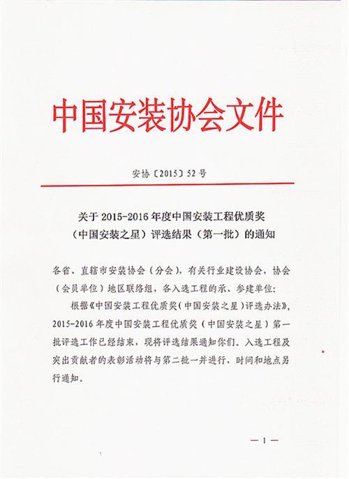 下载附件1:2015—2016年度中国安装工程优质奖(中国安装之星)入选工程名单(第一批)
