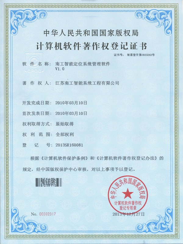 3499拉斯维加斯官网智能定位系统管理软件证书