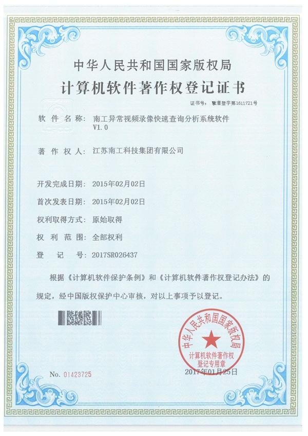 3499拉斯维加斯官网异常视频录像快速查询分析系统软件证书