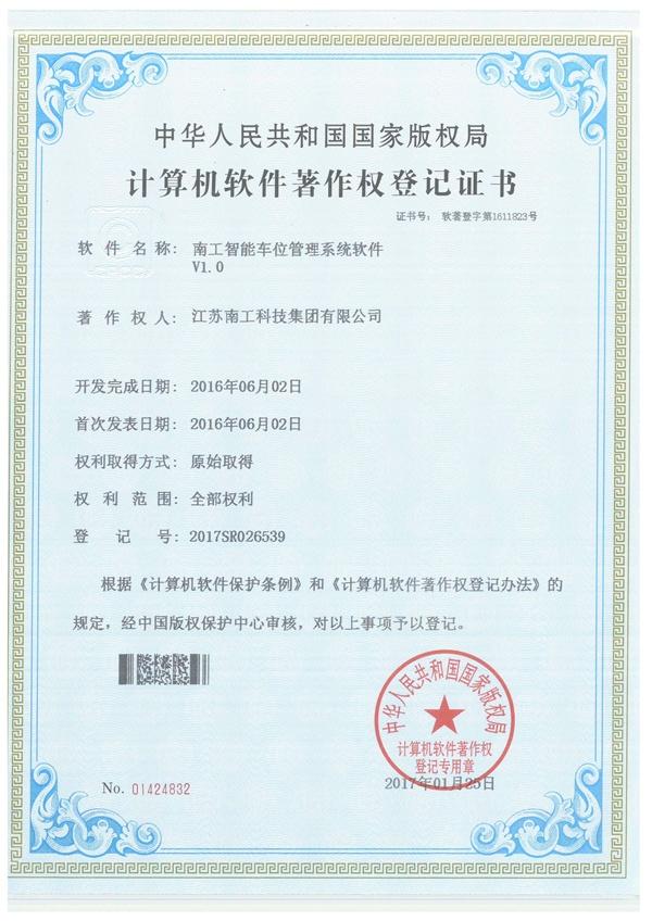 3499拉斯维加斯官网智能车位管理系统软件证书