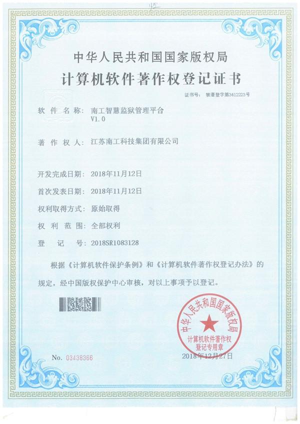 3499拉斯维加斯官网智慧监狱管理平台证书
